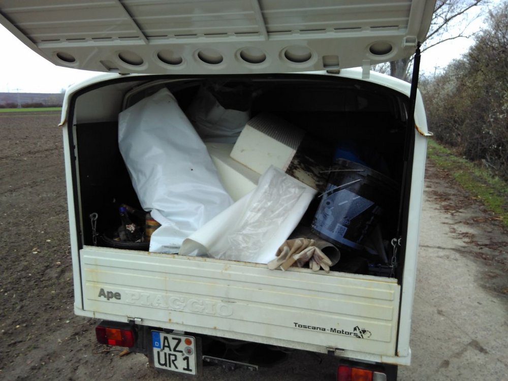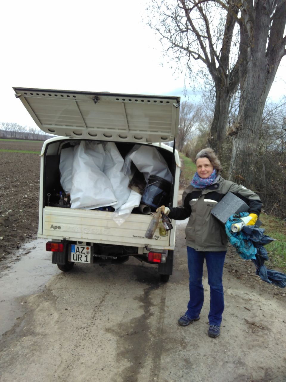 Wir als Grüne im OV Wonnegau unterstützen den Dreck-weg-Tag und haben an der „Putzaktion“ im März mitgemacht. Unser Sprecher Axel Sawitzki stellte seinen Ape bereit, die am Ende bis oben gefüllt war. Wir waren für das Gebiet rund um den Wertstoffhof in Osthofen zuständig und gerade dort wird gerne im Feld entsorgt. Vor allem konnte hier einiges an Schadstoffen gesammelt werden: Dämmung, Autobatterie, leere Behälter für brennbare Flüssigkeiten und vieles mehr.